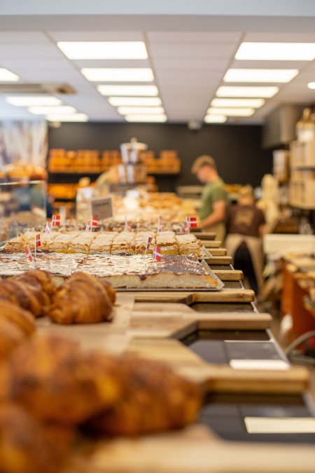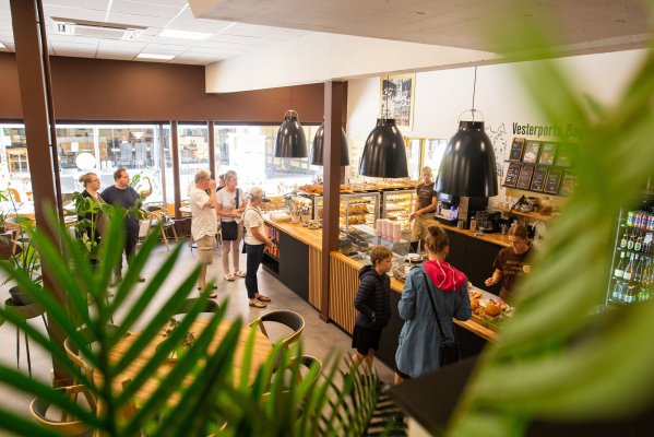Kom forbi og nyd et stykke hjemmebagt kage, en god kop kaffe og den varme stemning hos Vesterports Bageri & Café.